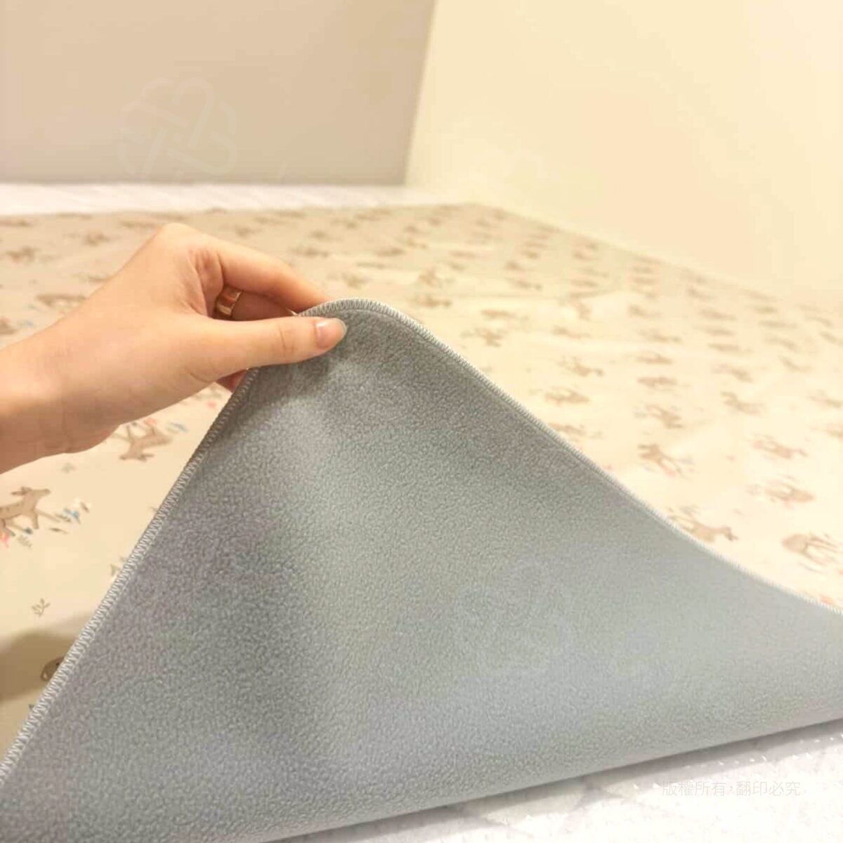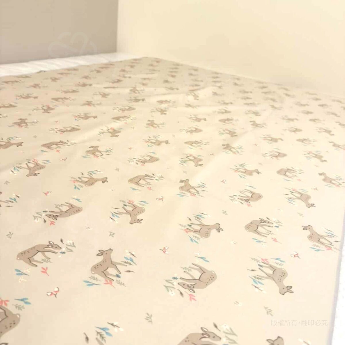 低飽和度且極具現代感的灰米底色,點綴著幾何感線條、低彩度粉藍粉綠色小鹿與花草圖騰,展現層次豐富的北歐童話風情,具有神祕且療癒的森林感。不僅功能強大,更是提升生活品味的軟裝。高科技防水層能徹底隔絕液體滲漏,保護床墊免受汗水與髒污侵擾。無論是大人自用、生理期防護或是作為嬰兒隔尿墊,都顯得格調十足且安心無虞。